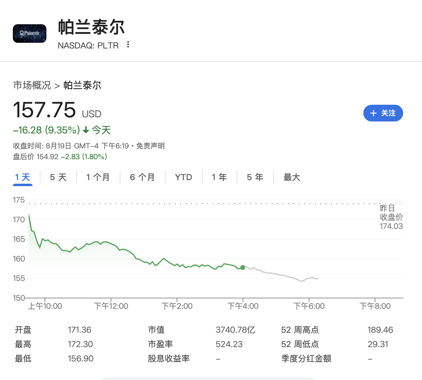 媒体称,Palantir的强劲走势使其跻身全美十大科技公司和最具价值的20家公司之列,但其股价也因此变得异常昂贵。其远期市盈率已飙升至245倍以上。
